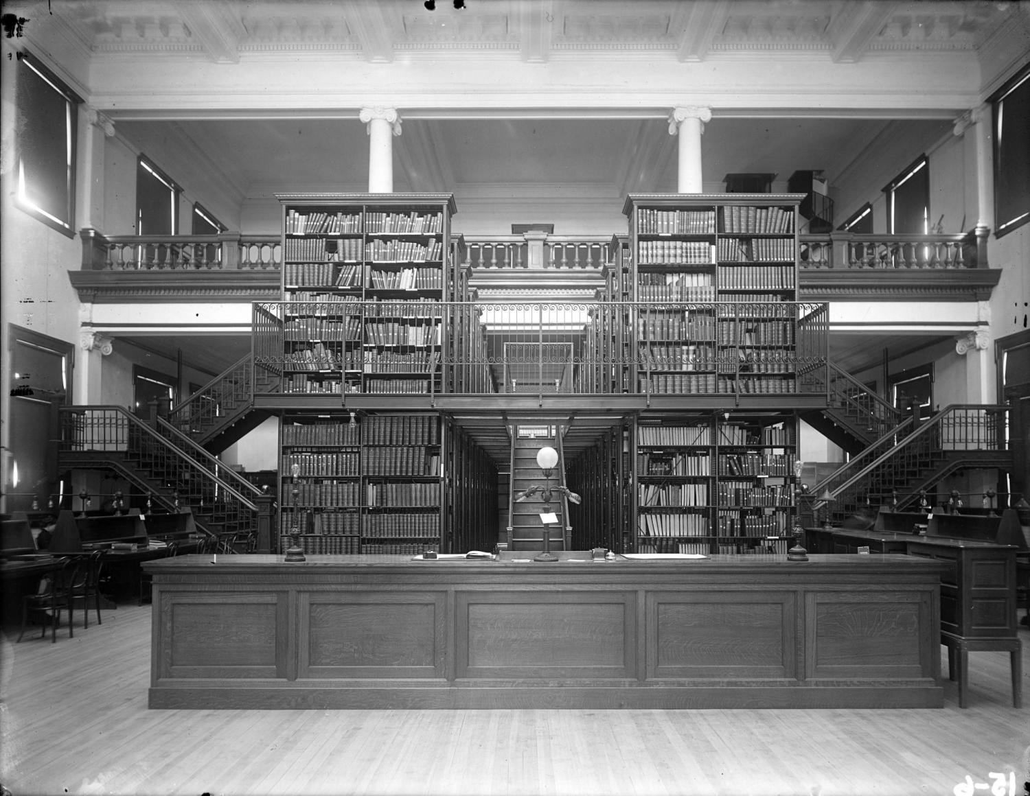 Originally one room in Old Main, the 1877 Buckingham Library at CU was the start of our information services. Pictured here is the freshly finished interior of the 1904 library building that we now know as the University of Colorado Theater. This 1904 image and other the turn of the century campus images can be found in the J. Raymond Brackett Photograph Collection held in the CU Boulder Archives.