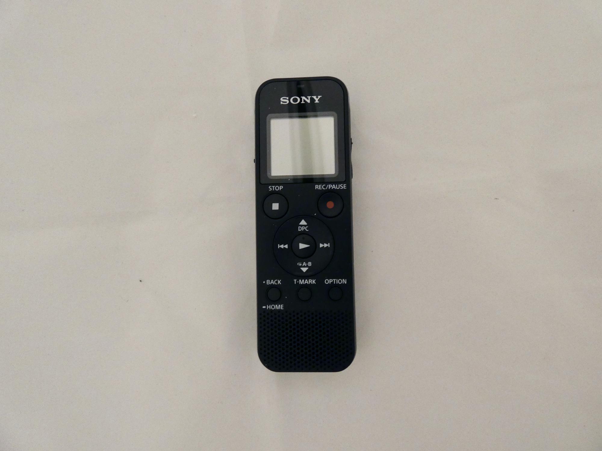 Simple voice recorder with 4GB built-in memory and built-in USB connector for transferring files.